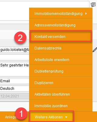 Klicken Sie in ihrem Kontakt auf weitere Aktionen.