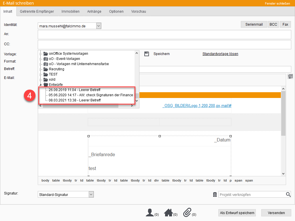 [E-Mail, Entwurf] Wo finde ich meine E-Mail die ich als Entwurf in onOffice gespeichert habe?