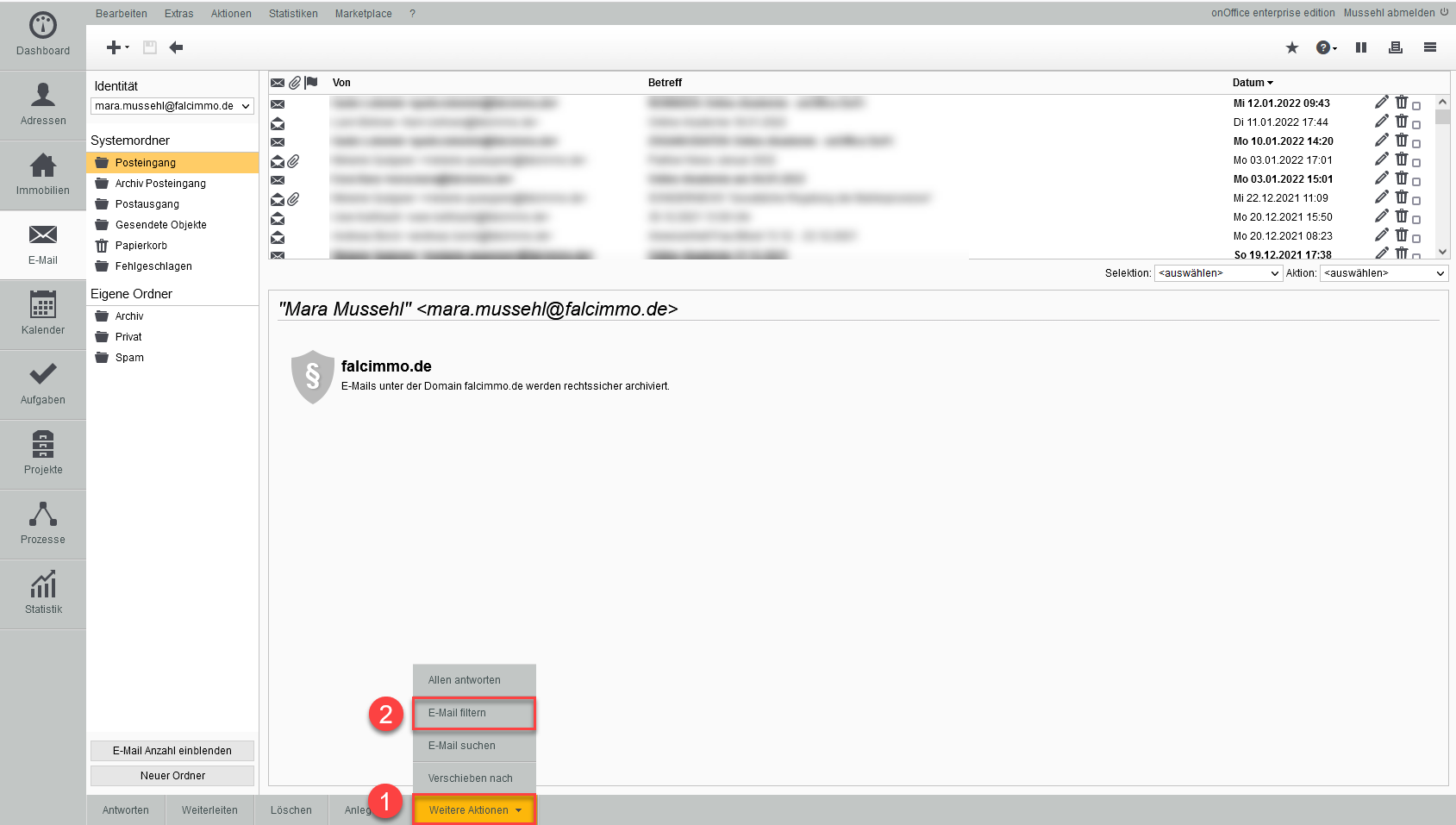 Wählen Sie die Option Email filtern aus.