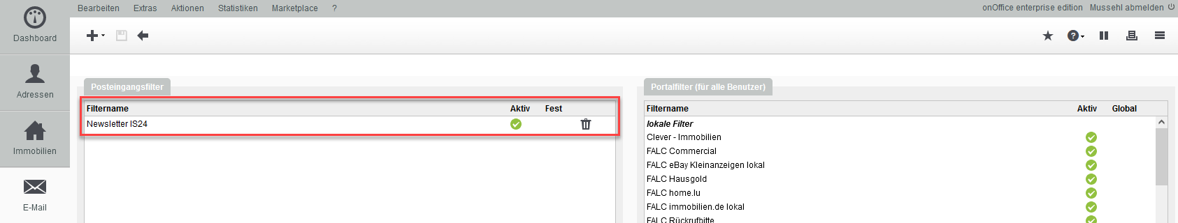 Speichern Sie, danach werden Sie sehen, dass der Filter jetzt auf Aktiv steht.