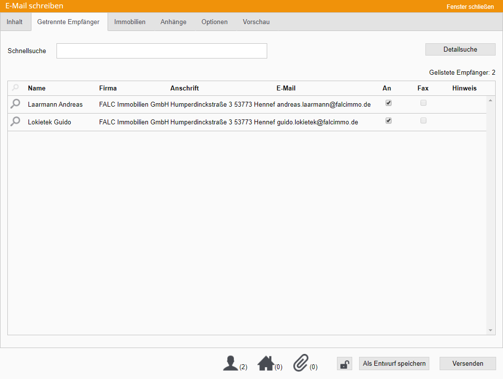 Aber in jeder Mail können Sie auf den Reiter "Getrennte Empfänger" (siehe