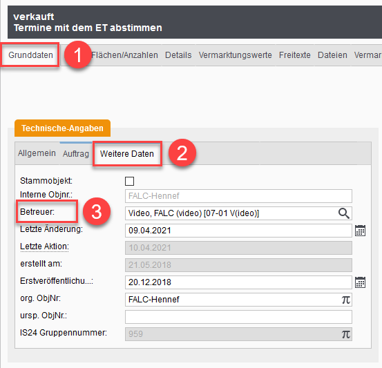 Gehen Sie in dem Objekt auf den Reiter Grunddaten.