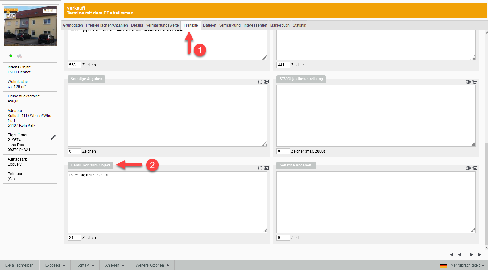 Der hinterlegte Text gilt auch immer nur für die eine Immobilie.