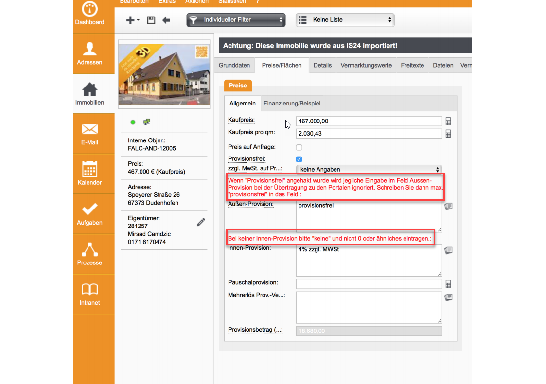 [Immobilien] Ich erhalte eine Fehlermeldung im Provision Bereich in onOffice. Was muss ich verändern?