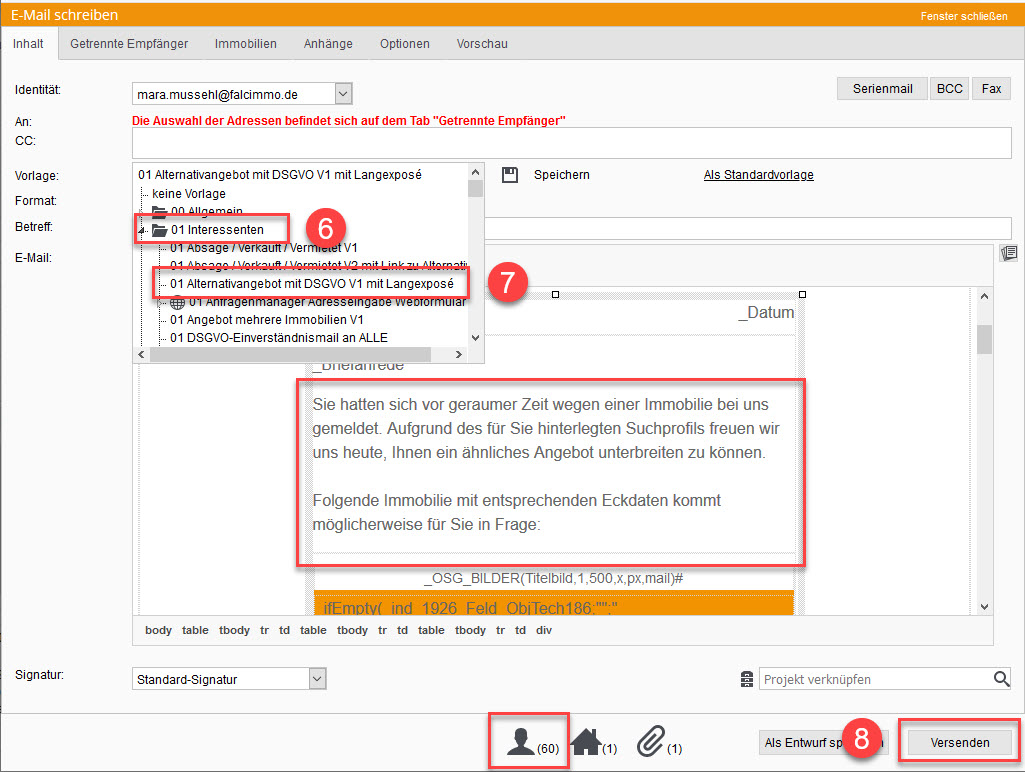 Abschließend müssen Sie nurnoch auf "Versenden" klicken.