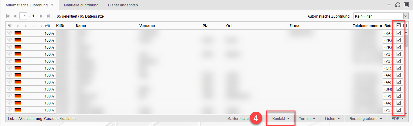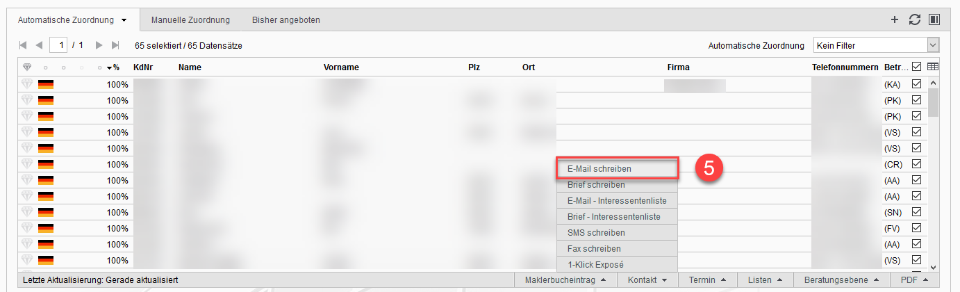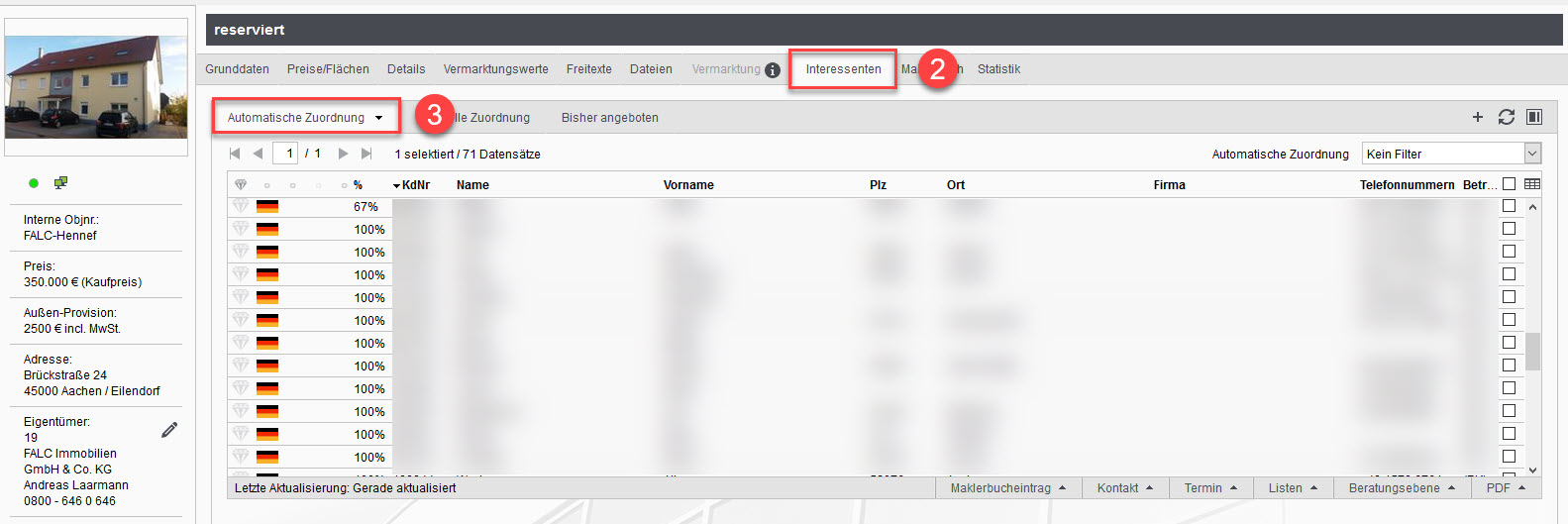 Klicken Sie auf "Automatische Zuordnung" und wählen Sie die passenden Interessenten aus.