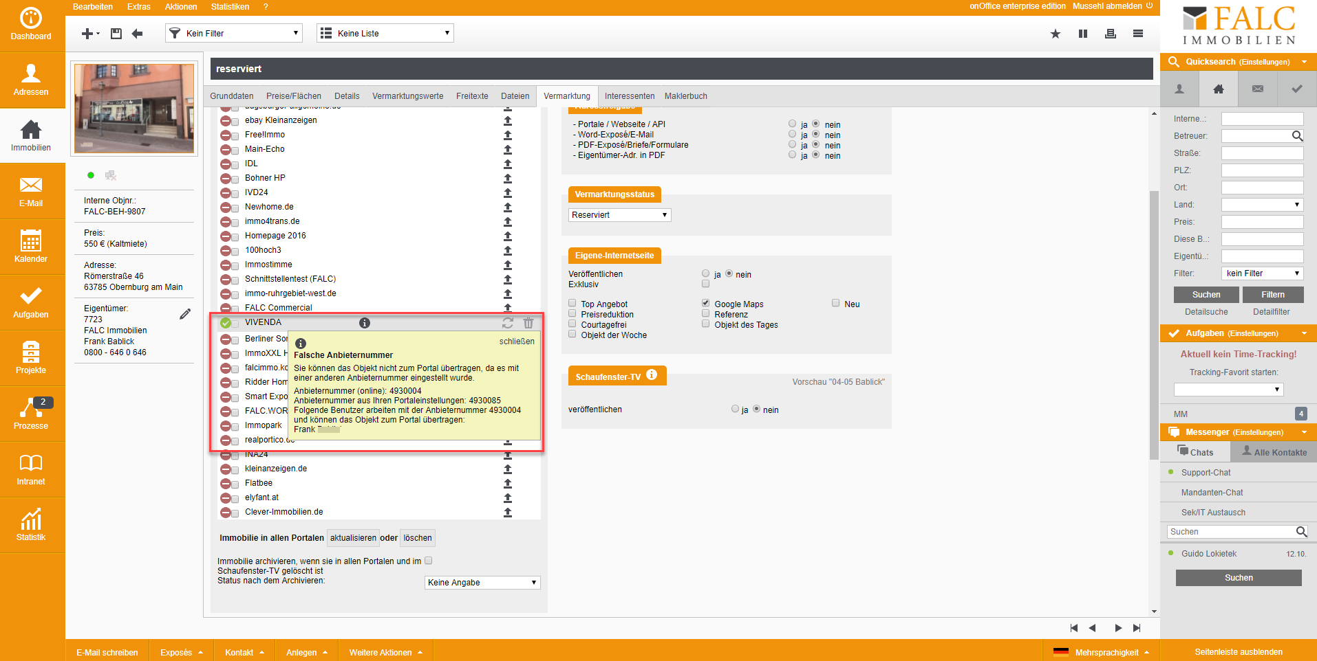 [Immobilien, Portale] Warum kann ich bei Vivenda eine Immobilie nicht löschen, zum Portal übertragen oder aktualisieren?