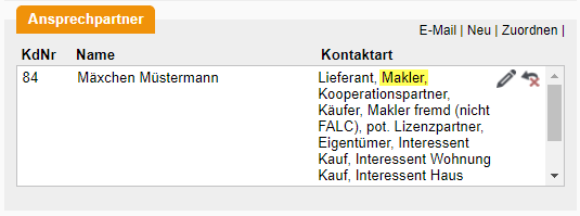 In der Box Ansprechpartner darf nur eine Person mit der Kontaktart "Makler" verknüpft sein.