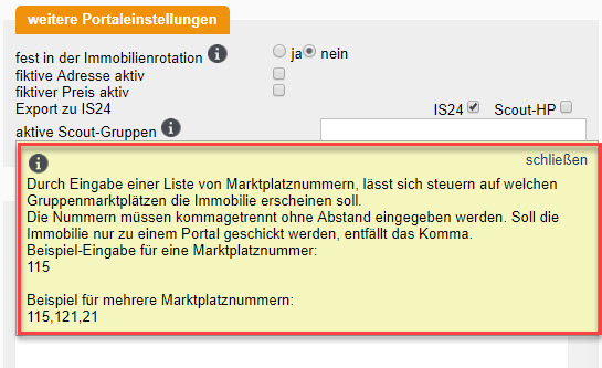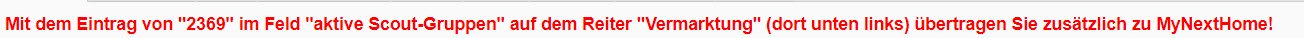 [Immobilien, Portale] Wie verschwindet der rote Schriftzug "Mit dem Eintrag von "2369" im Feld "aktive Scout-Gruppen" auf dem Reiter "Vermarktung" (dort unten links) übertragen Sie zusätzlich zu MyNextHome!"?