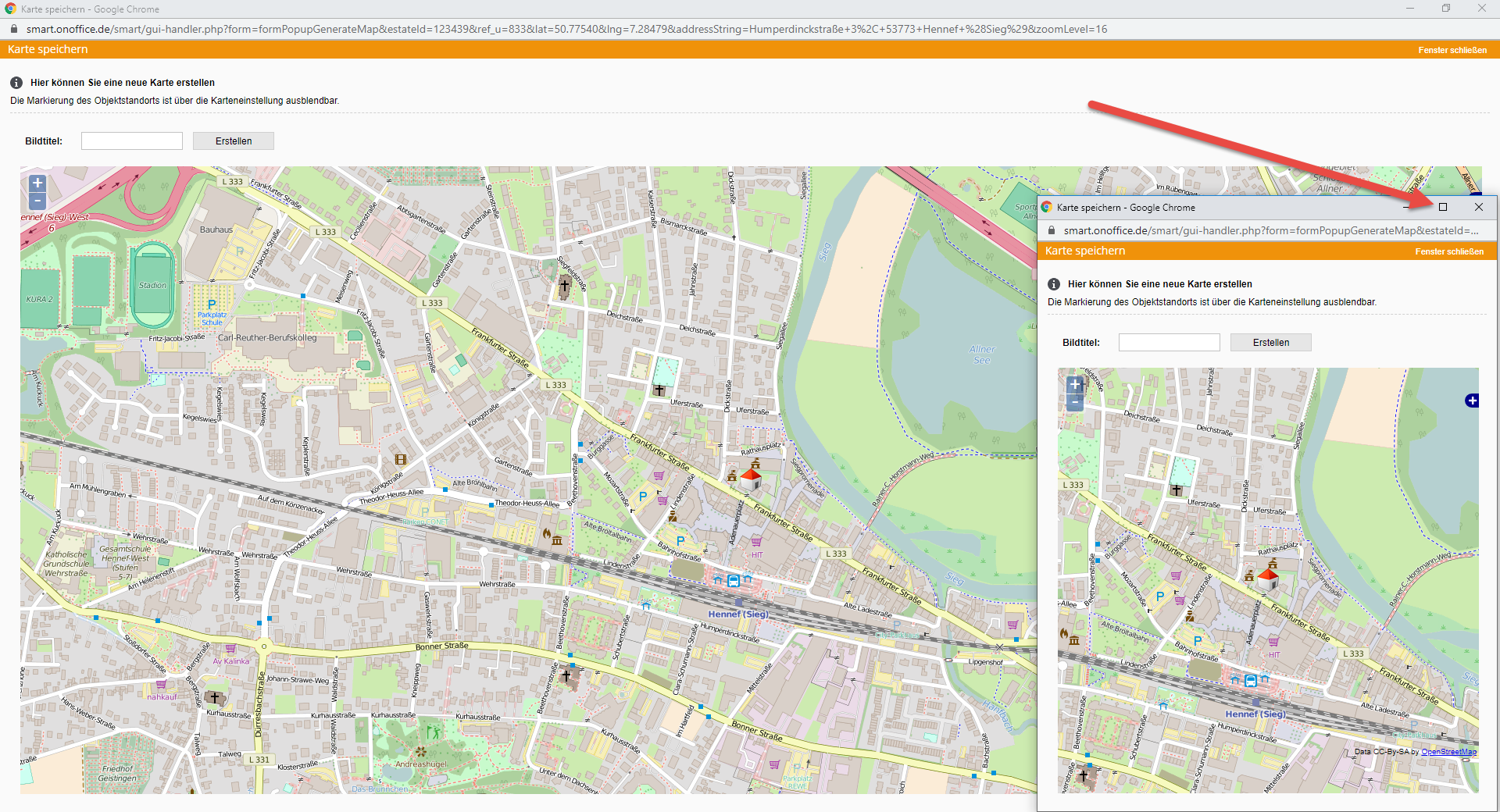 Beim Erstellen des Lageplans in onOffice müssen Sie das Pop-Up so groß wie möglich öffnen.