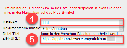 in "Ziel (URL)" den richtigen Link eintragen. Dieser wäre https://app.immoviewer.com/portal/tour/Objektnummer.