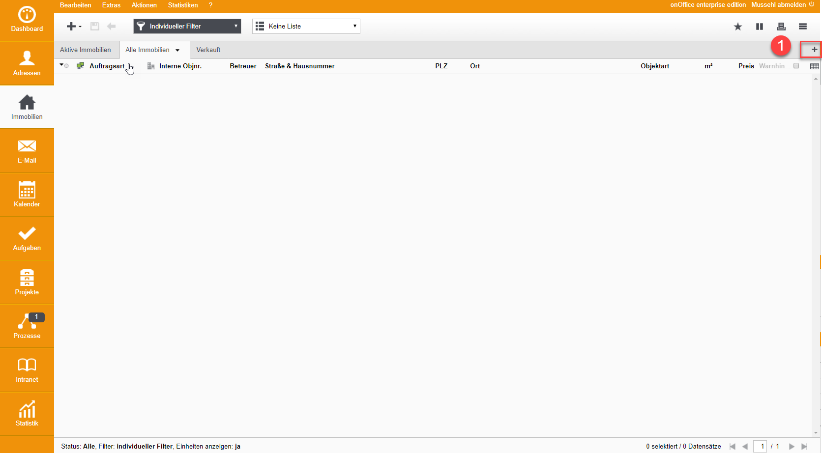 Dafür müssen Sie zuerst in Immobilien auf das Plus-Zeichen rechts (siehe