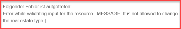 [ImmoScout24, Fehlermeldung] Was bedeutet die Fehlermeldung bei den JOBS MESSAGE: "It is not allowed to change the real estate type."?
