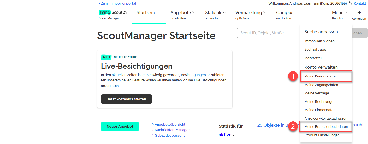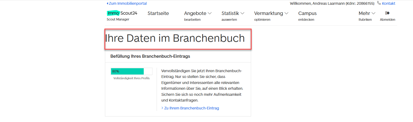 Die Gebietszuteilung in Immoscout24 richtet sich nach der Kundenanschrift.
