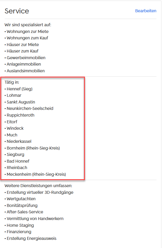 Sie ist unabhängig von dem Eintrag ihres Gebietes im Branchenbuch.