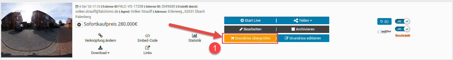 Klicken Sie in Immoviewer in der entsprechenden Immobilie auf Grundriss überprüfen.