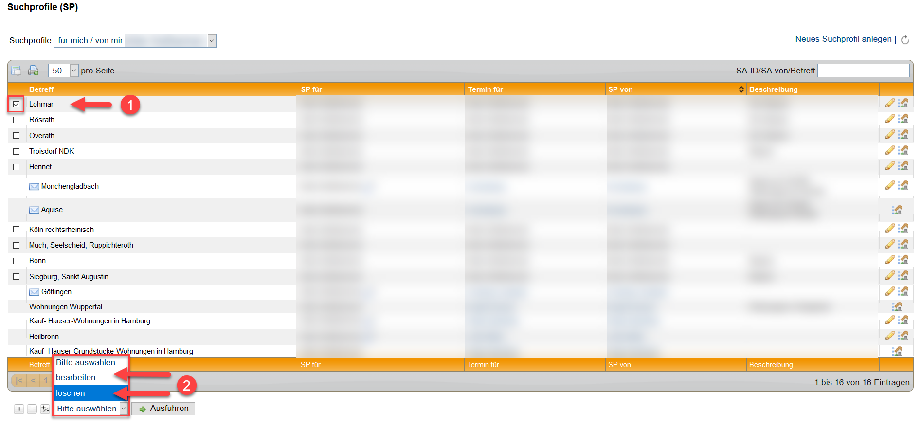 Sie können nun das Suchprofil bearbeiten oder löschen und klicken dann auf Ausführen.