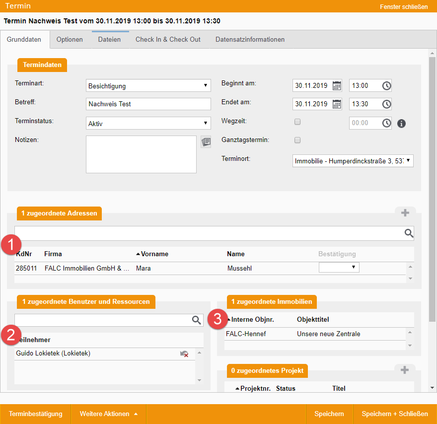 Für einen Vermittlungs-/Besichtigungsnachweis muss es einen Termin in onOffice geben mit demjenigen der Unterzeichnen soll.