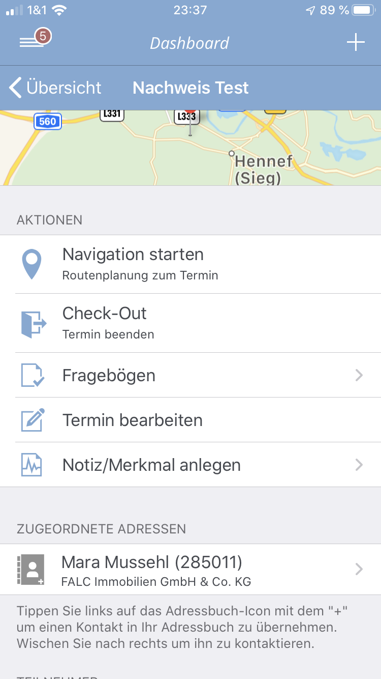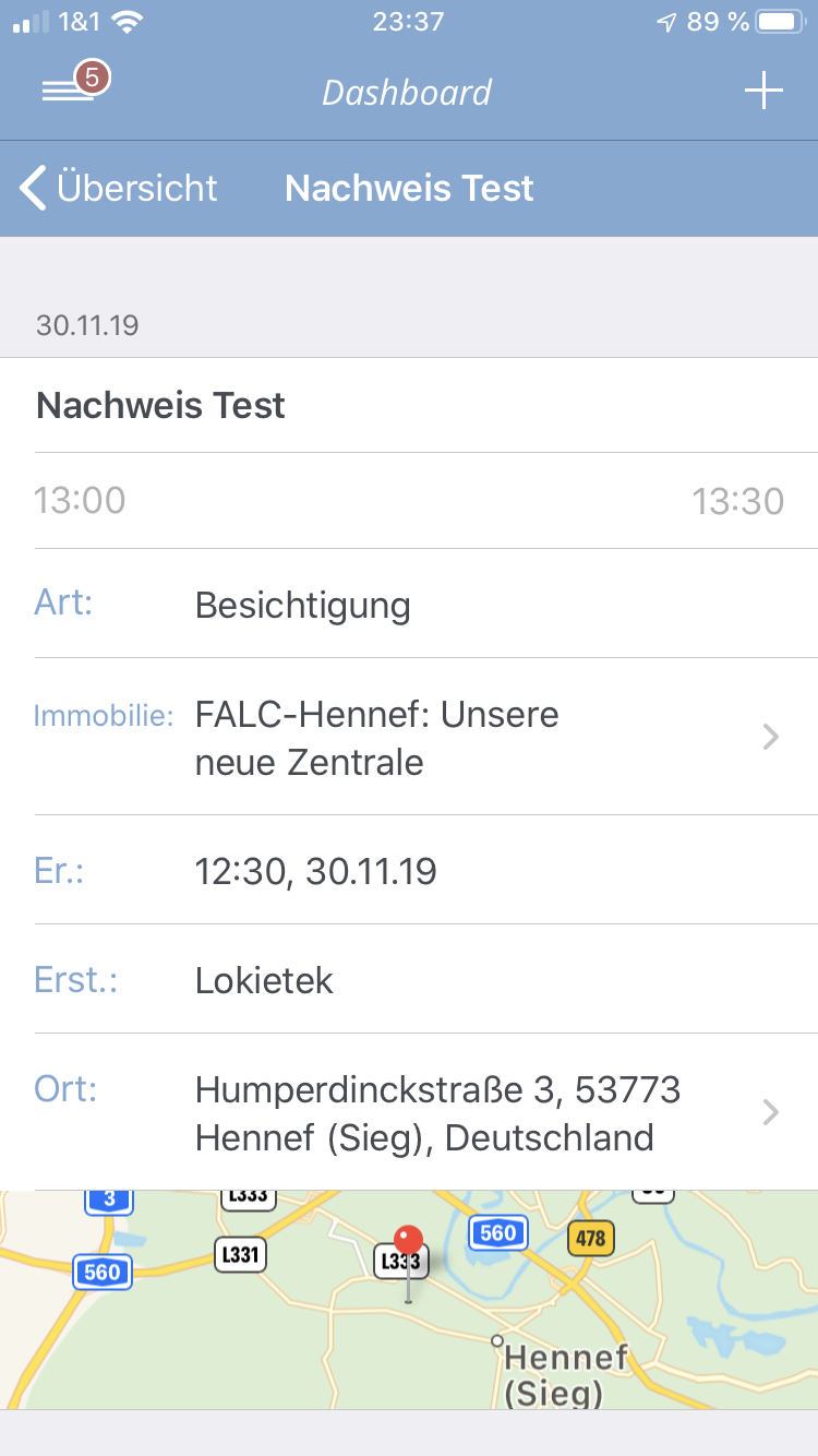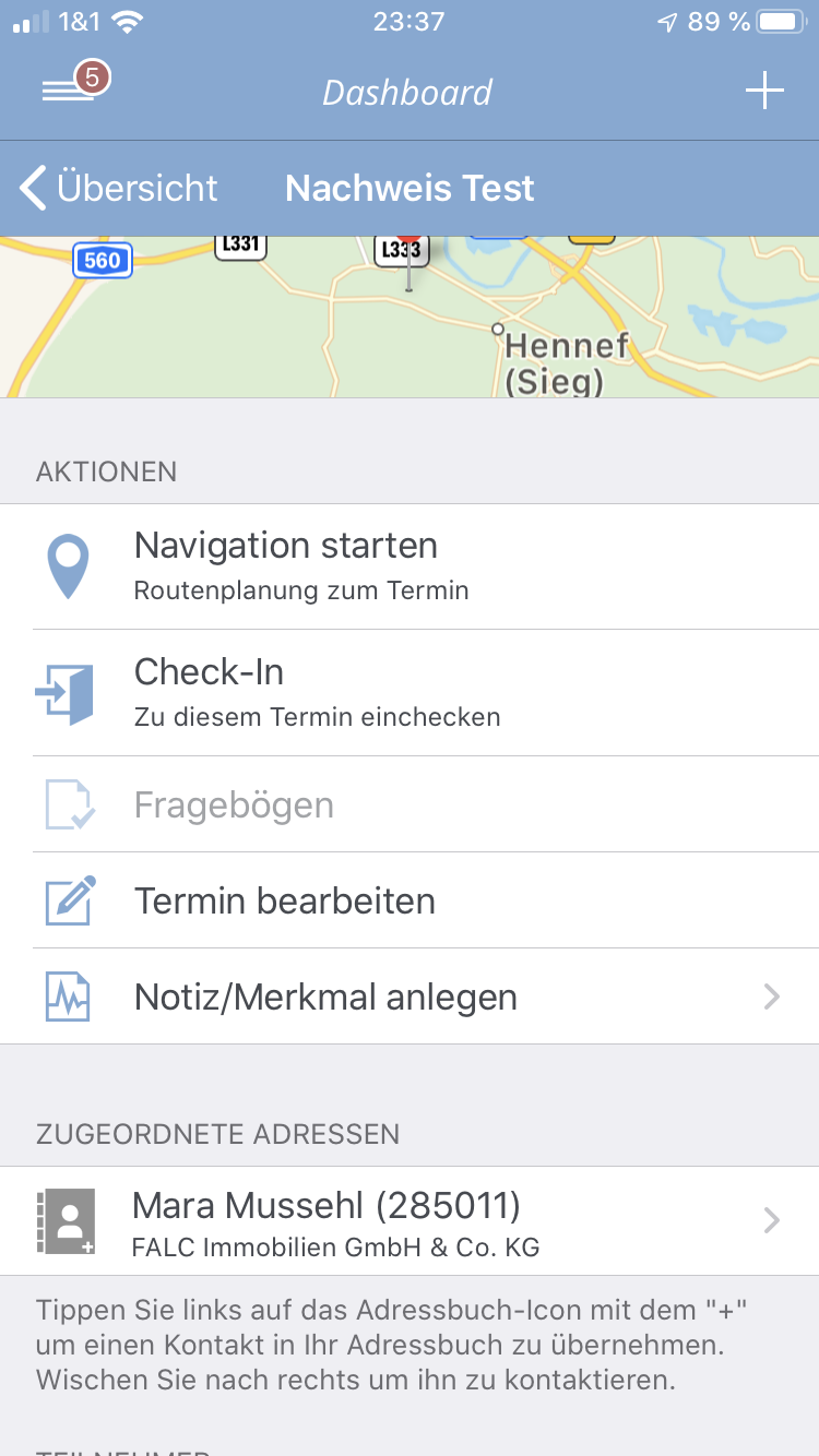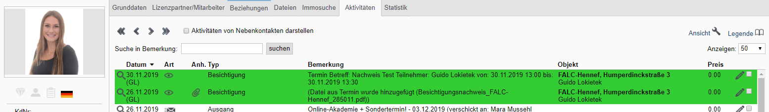 In onOffice gibt es nachdem das Handy im WLan ist einen Aktivitäten/Maklerbucheintrag zum Termin.