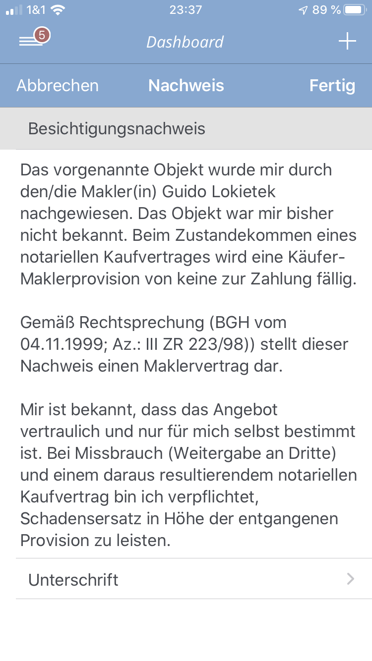 [Immobilien, Interessenten] Gibt es die Möglichkeit für Kaufinteressenten den Vermittlungsnachweis auch digital/online auszufüllen und zu unterschreiben?