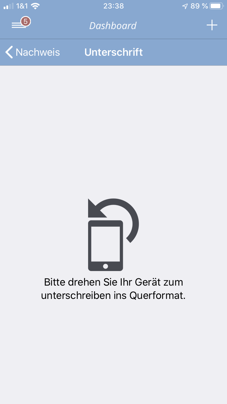 Das Handy sagt Ihnen dann, dass Sie es zum unterschreiben ins Querformat drehen müssen.