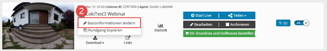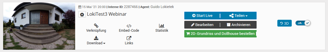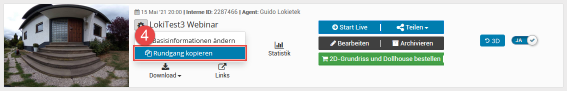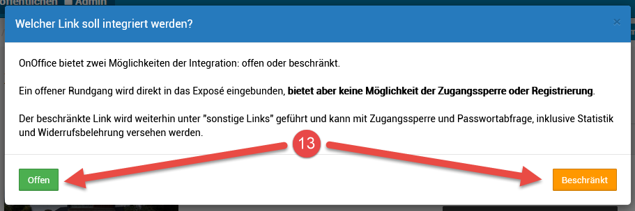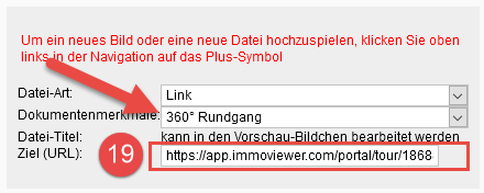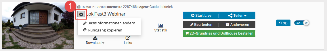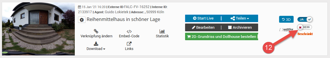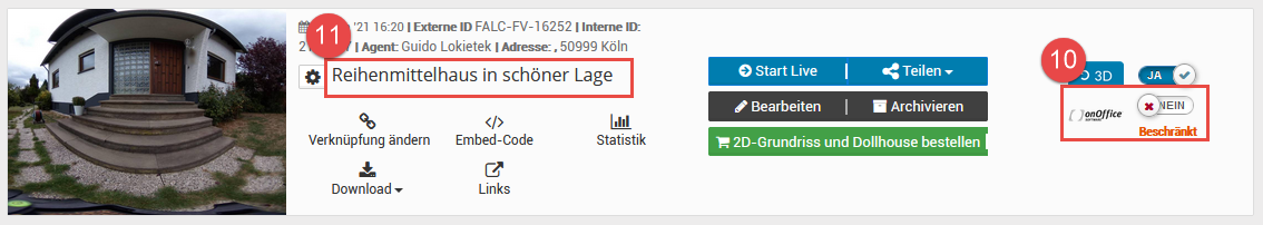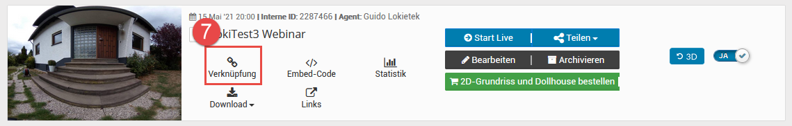 Wenn die Tour fertig erstellt ist, können Sie mit der Verknüpfung zu onOffice beginnen: