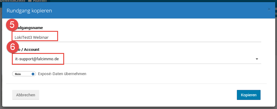 OPTIONAL: wenn Sie beispielsweise Ihr Objekt als Anlage und zum Wohnen veröffentlichen, also in onOffice eine Kopie besteht, können/müssen Sie die Tour hier