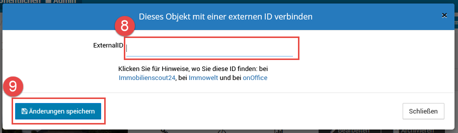 mit der Verknüpfung zu onOffice. Zuvor sollten Sie sich die "Interne Objnr." aus onOffice kopiert haben!