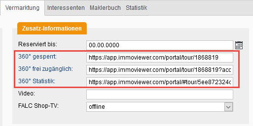 Durch den Klick im vorangegangenen Schritt werden die Links auf dem Reiter "Vermarktung" kopiert.