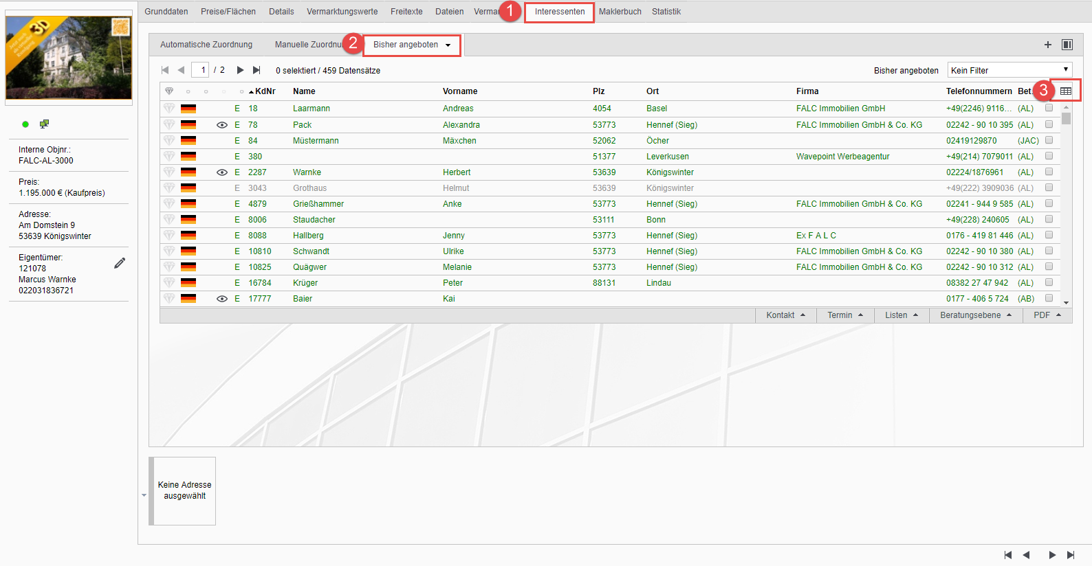 Zuerst klicken Sie im Objekt auf den Reiter "Interessenten" (siehe