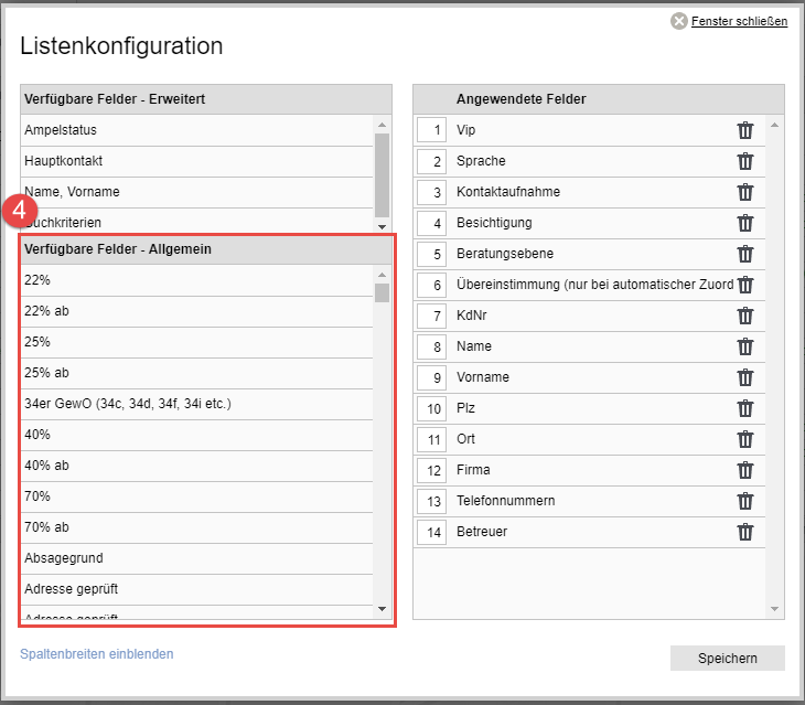 Als nächstes suchen Sie sich links unten in den Listen den Eintrag (siehe