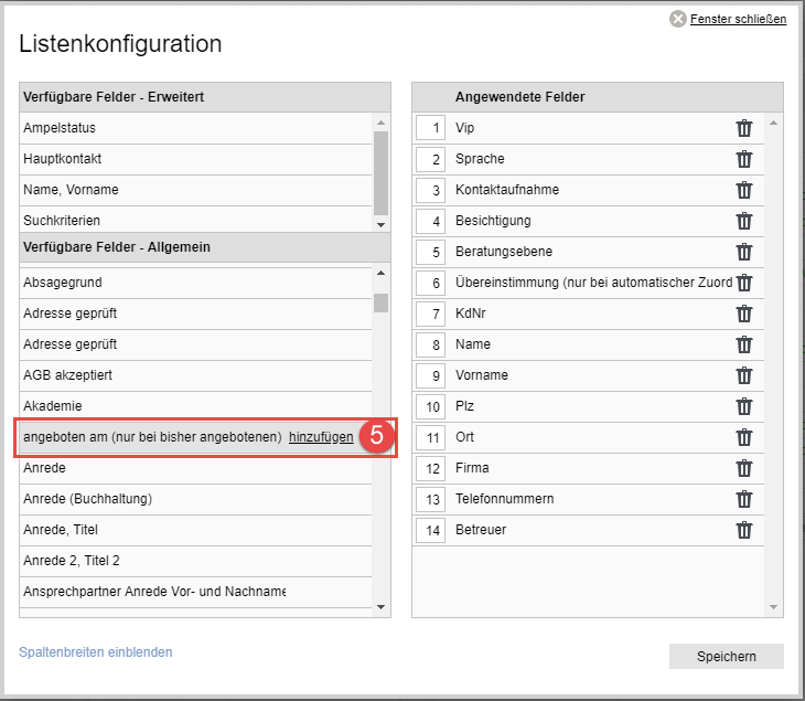 ) "angeboten am" heraus und klicken dort auf hinzufügen (siehe