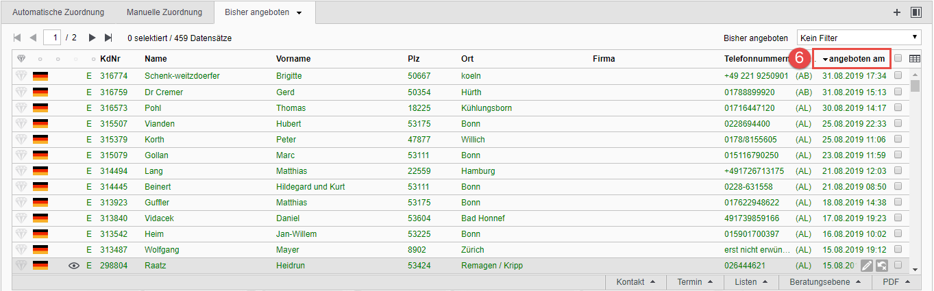 Dort auf den Unterreiter "Bisher angeboten" klicken (siehe