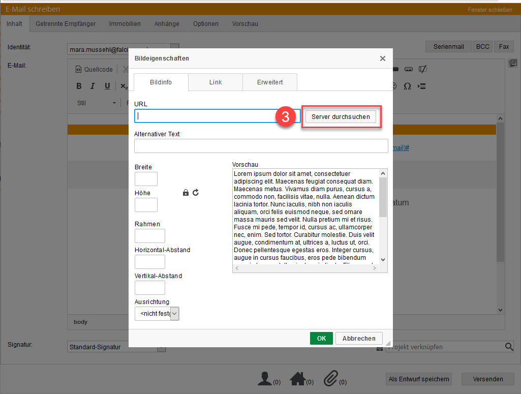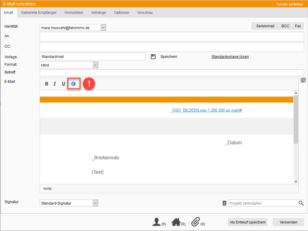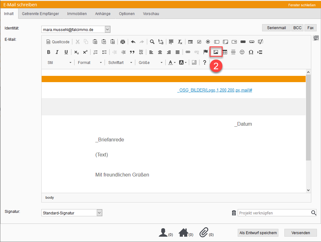 Sie können entweder z.B. unter https://imgbb.com/ das Bild hochladen oder in onOffice so tun als würden Sie ein Bild in eine Mail einbinden und den Link zum Bild dann kopieren.