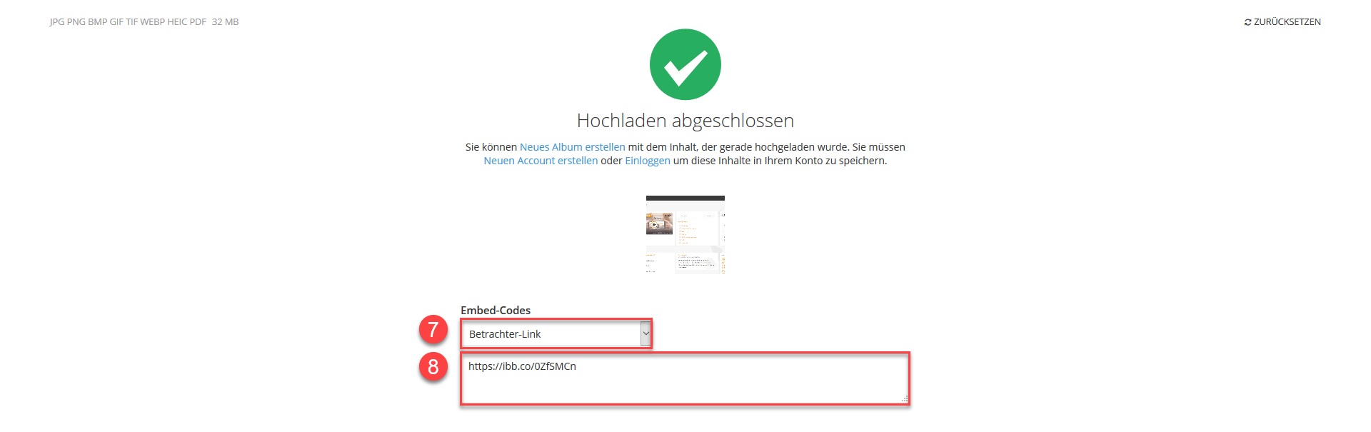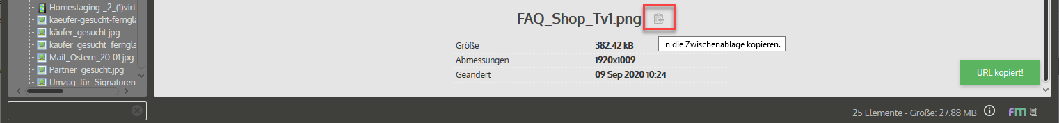 Wenn Sie nun ans Ende des Bildes gehen und auf das Symbol neben dem Bildnamen klicken wird die URL automatisch in ihrer Zwischenablage gespeichert.