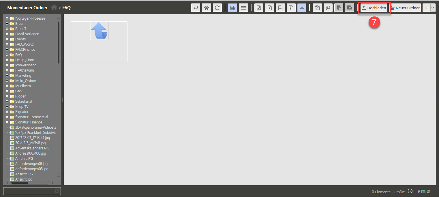 Klicken Sie in das Feld um die Datei hochzuladen.