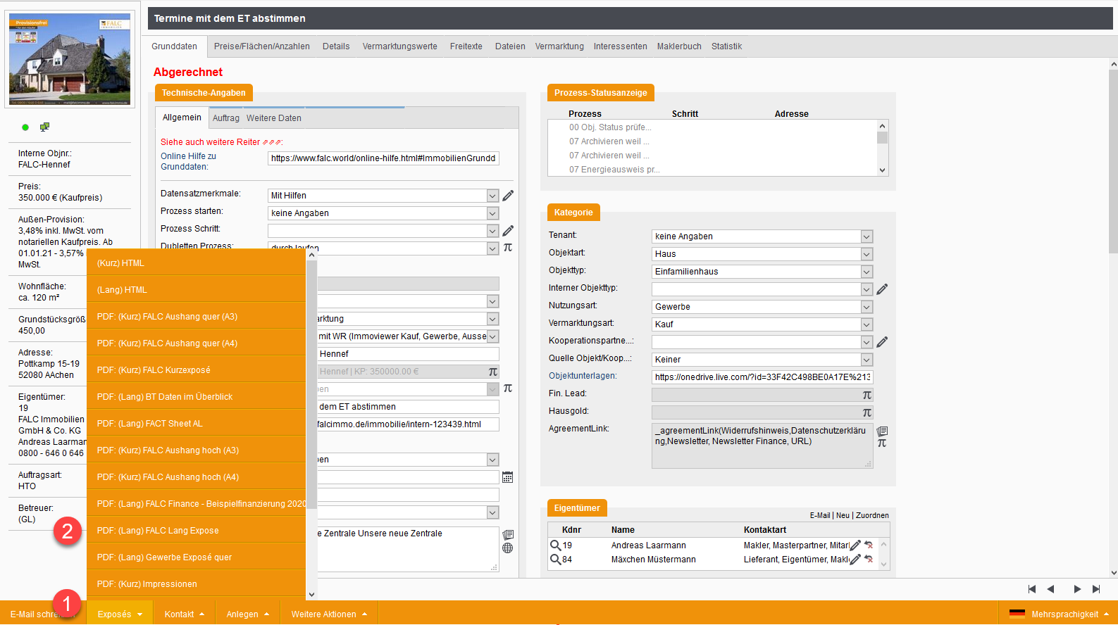 Klicken Sie in dem Objekt auf Exposes.