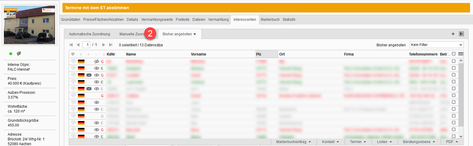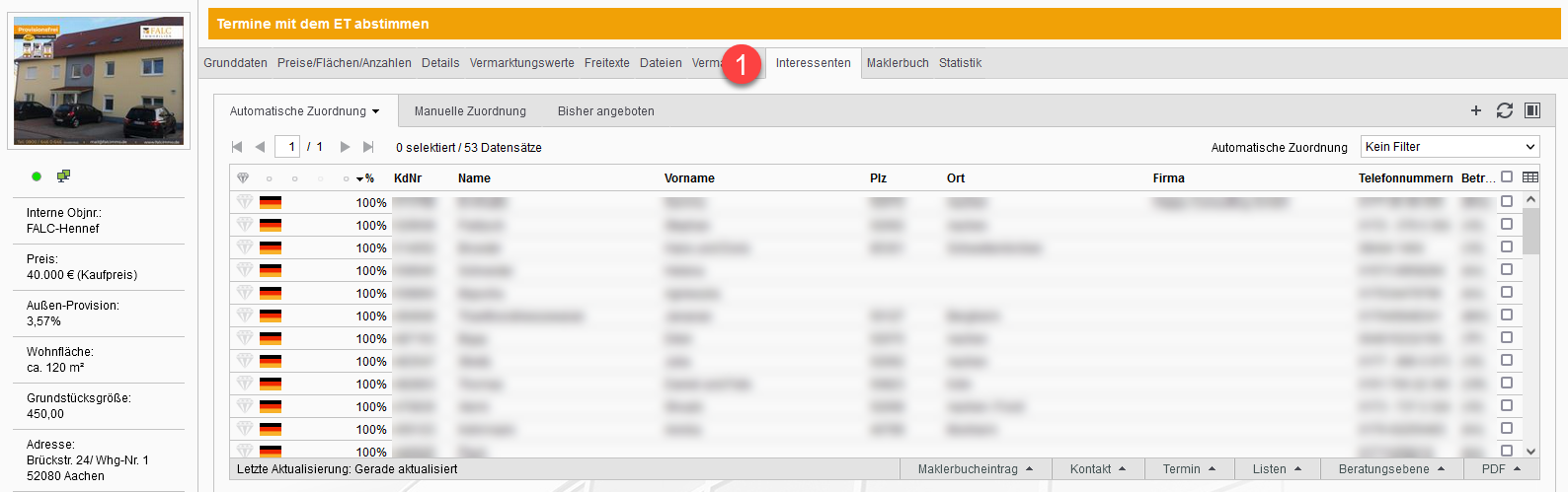 Gehen Sie in dem Objekt auf den Reiter Interessenten.