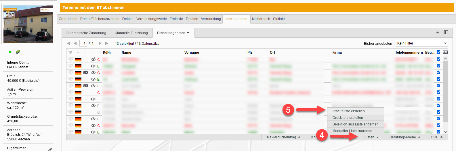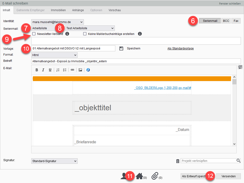 Um nun ein alternatives Objekt per Email an die von Ihnen erstellte Arbeitsliste mit Interessenten zu versenden, gehen Sie wie folgt vor:
