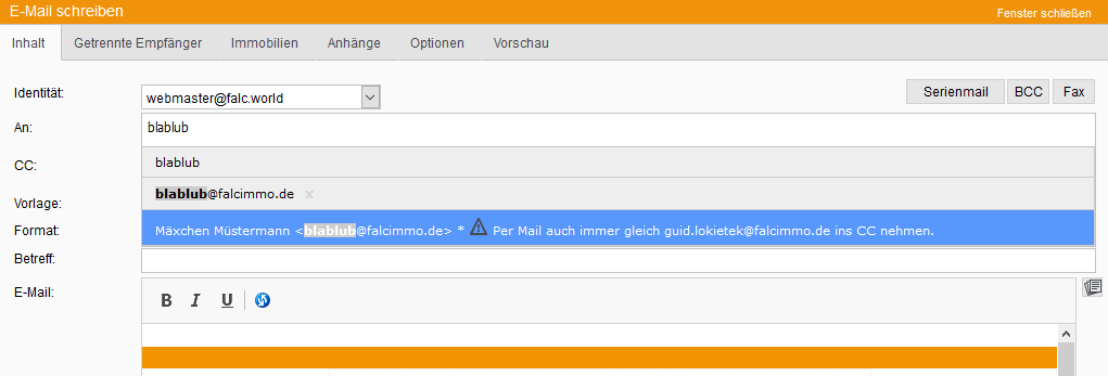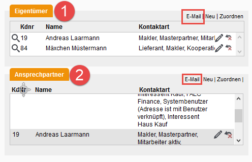 Bei Eigentümern und z.B. Hausverwaltern verknüpfen sie die weitere Email-Adresse und nutzen die Email-Links an den Boxen.