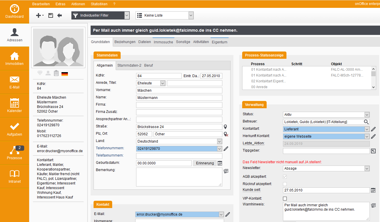[Interessenten, Eigentümer, Ansprechpartner, Mail] Wie kann ich eintragen, dass wenn ich eine Person anschreibe, gleichzeitig eine weitere Person angeschrieben wird (z.B. aus gesundheitlichen Gründen)?