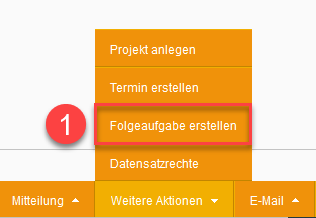 Aus der Aufgabe heraus können Sie dann mithilfe des unteren Menüs "Weitere Aktionen" eine Folgeaufgabe erstellen (siehe