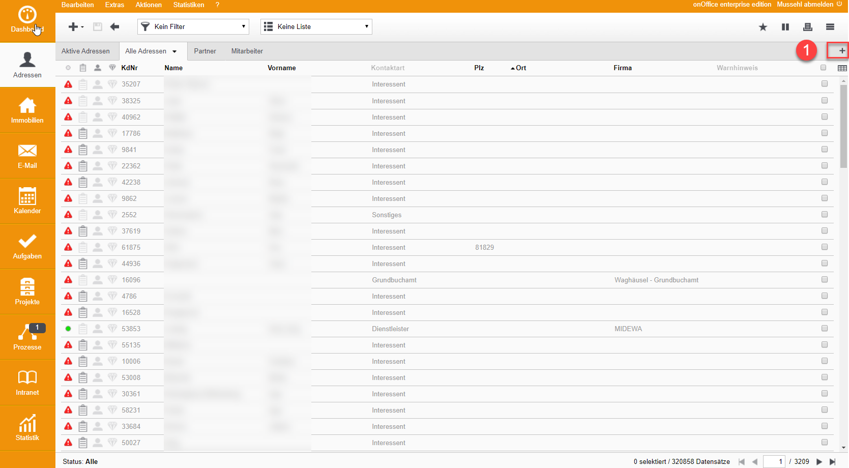 Um eine Übersicht über Ihre Adressen zu haben können Sie entsprechende Reiter anlegen.