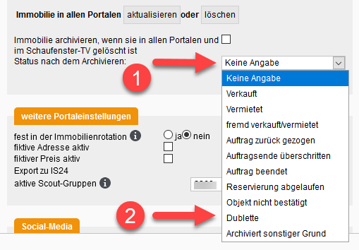 [Immobilien, Status] Wie stelle ich den Status eines Objekts ein, wenn ich dieses mehrmals angelegt habe und es nun verkauft wurde?