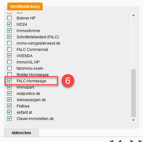 Zum Schluss müssen Sie nur noch einmal unter Vermarktung die FALC Homepage aktualisieren.
